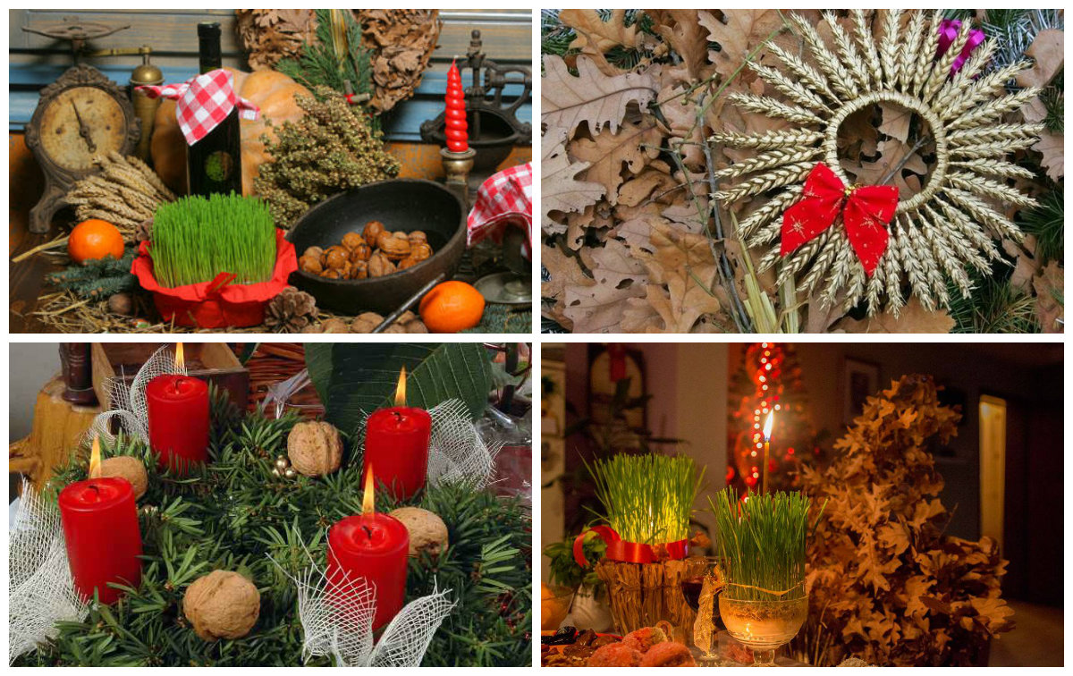 Za Badnji dan, večer i Božić, dekoracija može da bude nesto tradicionalnija, ali isto tako može se improvizovati. U posudu u koju se stavljaju orasi, lješnjaci, zrna kukuruza ili slatkiši, umjesto salveta ili nekih modernih tkanina – stavite slamu.
