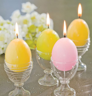 Jednostavne svijeće u obliku jajeta i u šarenim tonovima, savršen su izbor za centralnu dekoraciju trpezarijskog stola. Također, poneki komad može izgledati jako lijepo i na stolu u dnevnoj sobi, kao i na mini kabinetu u hodniku ili policama. Stavljene u jednostavne držače za kuhana jaja, naglasit će prazničnu atmosferu.