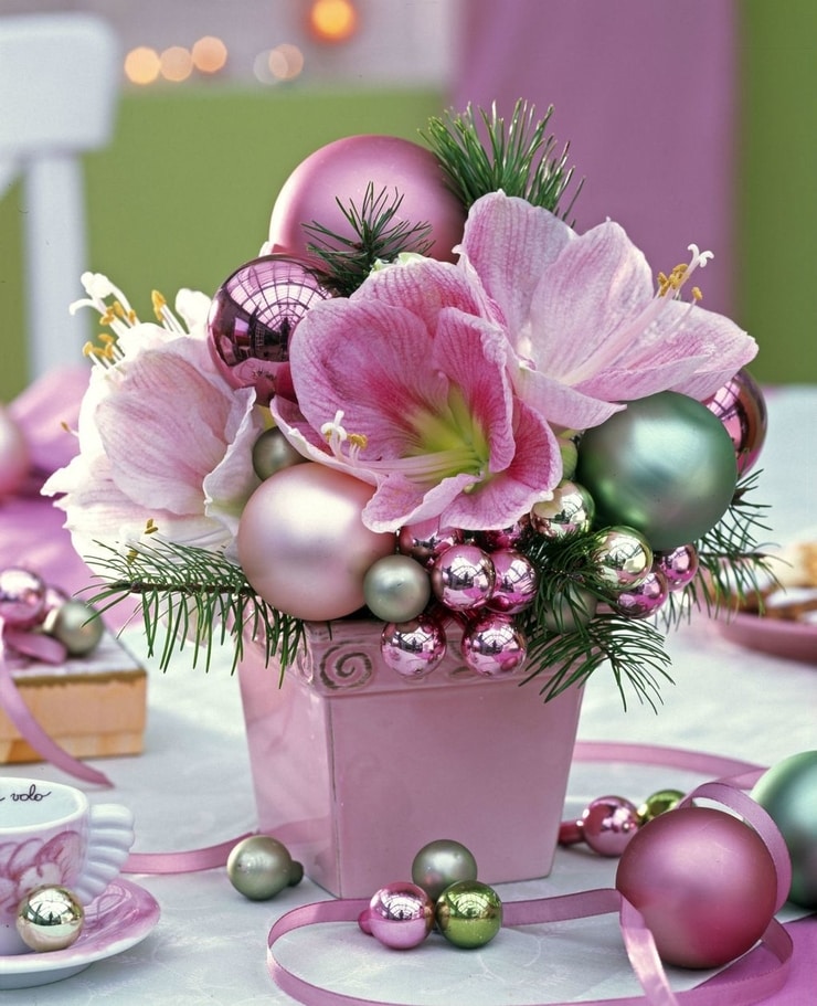 Ko kaže da i cvijeće ne može biti gost blagdanskog stola? Nježna ružičasta orhideja u društvu borovih grančica i ružičastih kuglica ukrast će pažnju vaših gostiju. Naravno, možete se odlučiti i za tradicionalniji okrugli aranžman s ružičastim svijećama i raznim ukrasima.