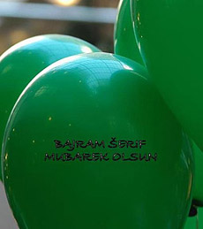 Baloni ne moraju biti rezervisani samo za dječije proslave i vjenčanja. Na zelene i balone drugih boja, prije nego ih napušete, napišite flomasterom prigodne poruke arapskim slovima. Ovako aranžirani baloni nikoga neće ostaviti ravnodušnim.
