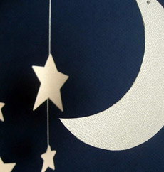Jeftin i zabavan način ukrašavanja je ručna izrada ukrasa u obliku mjeseca i zvijezda. Dajte svojoj mašti i kreativnosti na volju. Poslužite se kuhinjskom alu-folijom, sjajnim ukrasnim papirom i kartonom. Izrežite potrebne oblike od kartona i nalijepite sjajnu foliju ili papir s obje strane. Zatim ih vežite silkom ili svijetlim koncem i pričvrstite za plafon, preporučljivo na različitim visinama.