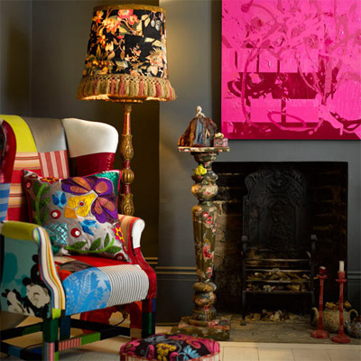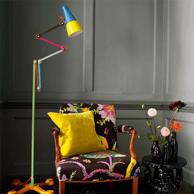 Osvježite dosadne sive zidove lampom u duginim bojama, razigranim tkaninama i stolićem za kafu u gotskom stilu.