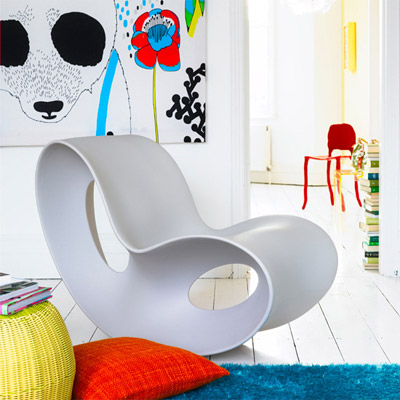 Svi volimo ovaj svijetli, prozračni prostor. Jastuci u boji personaliziraju stolicu za ljuljanje i u bijelo obojeni brodski pod.