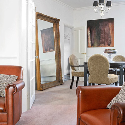 Pomiješate teksture i razdoblja i kreirajte eklektičnu i stilski uređenu dnevnu sobu. Ovdje su spojene grčke zidne umjetnine, srednjevijekovno ogledalo i barokni namještaj. Sve se uklapa zato što je šema boja jednostavna.