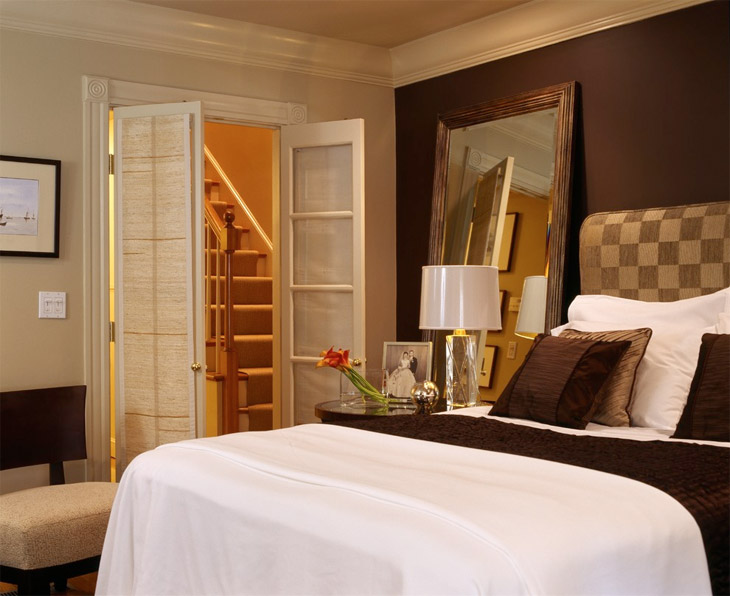 Ljubitelji toplih boja mogu odabrati tamno smeđu za zid kojim će naglasiti prostor. Sobu upotpunite bijelim, bež i zlatnim detaljima.