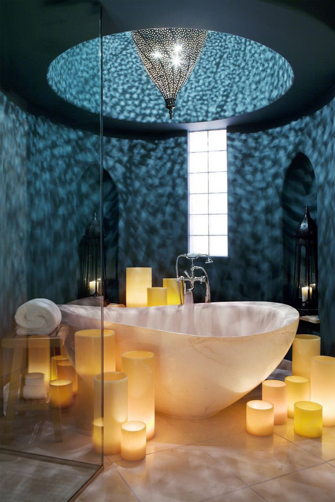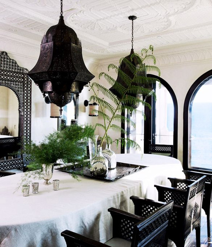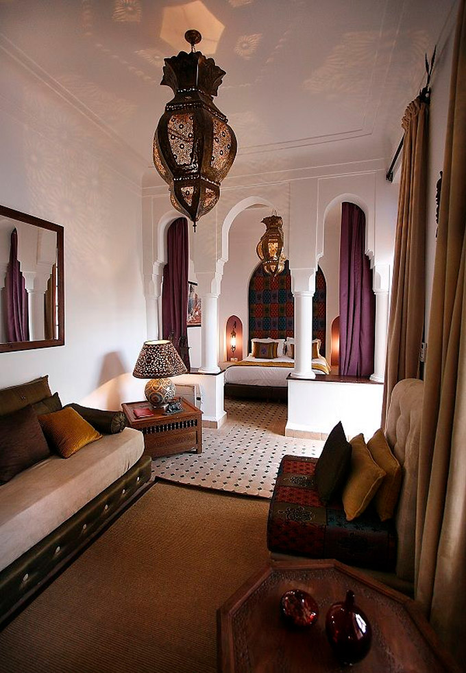 Jako afričko sunce navodi Marokance da unesu elemente izvana kako bi u ugodnoj hladovini mogli uživati u egzotičnoj oazi inspiriranoj pejzažom oko njih. Žive boje prisutne su na namještaju i detaljima, biljkama u saksijama i nježnim osvjetljenju kako bi se postigao izgled savršene oaze u zatvorenom.