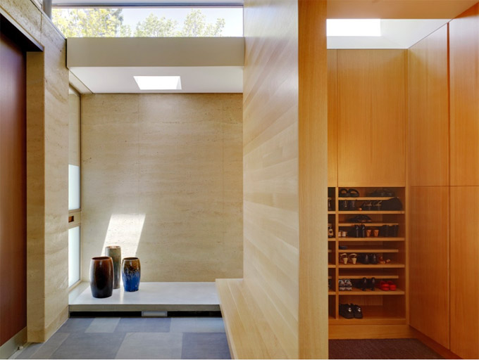Na ovoj fotografiji, kao što možete i sami vidjeti, ulaz ima policu ili ormar koji Japanci zovu "getabako". Tu se odlaže obuća na način da vrhovi budu okrenuti prema vani. Ulaz je jednostavan, s puno elemenata prirodnog drveta i puno prirodnog svjetla.