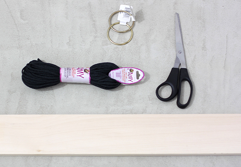Za ovaj projekat potrebne su vam dvije drvene daske, dva metalna prstena, špaga, makaze i bušilica.