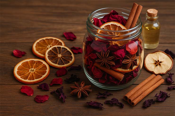 Jedan od najjednostavnijih načina da svom prostoru udahnete toplinu, bez upotrebe hemikalija ili skupih sprejeva, jeste izrada domaćeg potpourrija – sušene mirisne mješavine koja ne samo da osvježava prostor, već ga i estetski oplemenjuje.