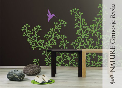 Serija zidnih šablona NATURE je sastavljena od oblika preuzetih iz biljnog i životinjskog svijeta, koji se međusobno mogu kombinirati i preplitati. Namijenjena je onima koji u svoj urbani dom ili radni prostor žele unijeti dašak prirode, ispružiti se pri pogledu na intimni travnjak ili posjedati oko razraslog grmlja, kojeg oblijeću ptičice.