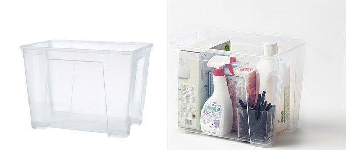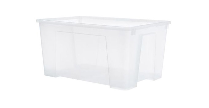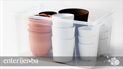 Velika kutija sa poklopcem dimenzija 56 x 39 x 28, odnosno zapremine 45 litara, odlično je mjesto za odlaganje većih predmeta koji će biti sklonjeni od prašine. U nju možete staviti sportsku opremu, alat za vrt, pribor za pranje i čišćenje. Zahvaljujući prozirnom materijalu od kojeg je napravljena, sadržaj je lako vidjeti i sve možete vrlo brzo pronaći.