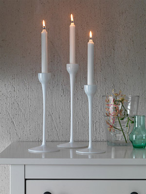 Tri svijećnjaka različite veličine (24, 28 i 32 cm) napravljena su od puhanog stakla. Svaki je oblikovao vješt majstor. Dizajn potpisuje P Amsell/B Berlin, a proizvodi ih IKEA.