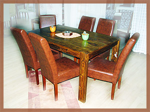 Ovog puta za vas smo izdvojili trpezarijski set u kojem je stol od tikovog, a stolice od masivnog drveta. Stolicu možete presvući štofom ili eko kožom po želji.