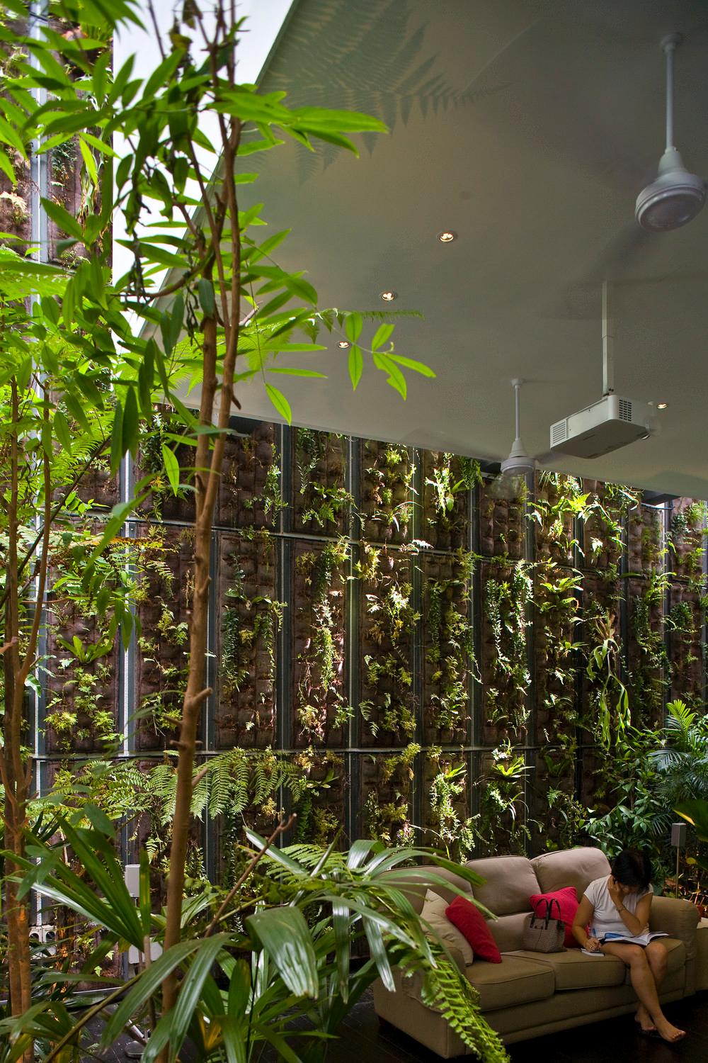 Biljke se protežu kroz sve nivoe kuće, iz prostorije u prostoriju, ispunjavajući čak i kompletne zidove. Ovakav „organski“ dizajn podario je ovoj kući jednu sasvim posebnu mikroklimu gdje sve te biljke rastu, žive i sazrijevaju kao da se nalaze u prirodi. U zraku se osjeti miris vlažnog tla. Pod nogama šušti opalo lišće. Sve to ovom prostoru daje svježinu što smanjuje potrebu za klima-uređajima i vještačkim svjetlom.