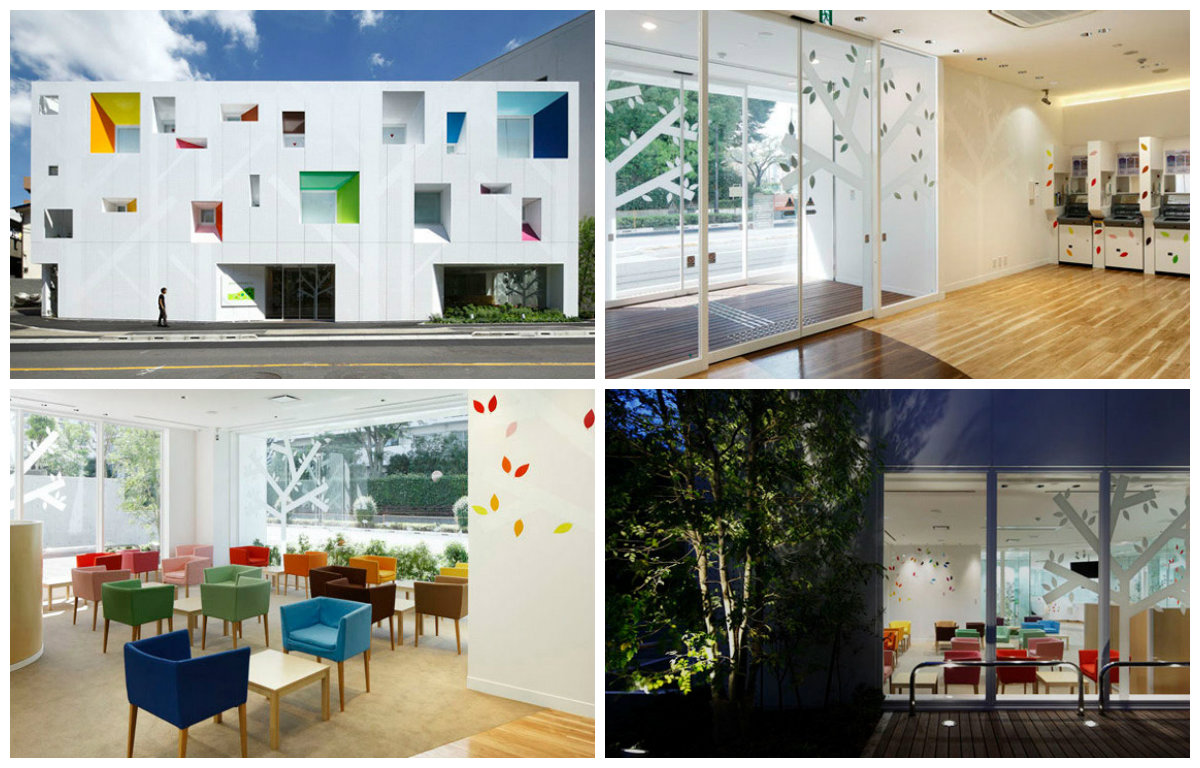 Francuska arhitektica Emmanuelle Moureaux je dizajnirala poslovnicu jedne od najvećih banaka u Tokiju. Njena ideja, na kraju uspješno realizovana, bila je da uobičajan i pomalo dosadan izgled banaka i sličnih poslovnih zgrada pretvori u nešto razigrano i vedro. Obzirom da je atmosfera u bankama često napeta, Emmanuelle je željela stvoriti okruženje koje će ljudima pomoći da se opuste i osjete prirodu.