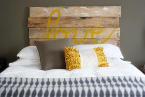 Nekoliko starih spojenih dasaka mogu poslužiti kao platno na kojem možete izraziti svoju kreativnost. Držeći se izreke: Manje je više, napišite samo jednu lijepu riječ kao što je “ljubav” na spojene daske i dobit ćete divan dodatak vašoj spavaćoj sobi koji predstavlja uzglavlje ali i vaše lično umjetničko djelo.