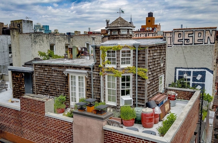 Druge su pak nalik na obične kuće sa dvorištima, koje izgledaju kao da ih je neki tornado pokupio u predgrađu i spustio ravno na njujorški neboder. Zašto se žrtvovati i seliti daleko od centra zbog mirnog i ugodnog prigradskog načina života, kada takav život možete donijeti ravno u središte Manhattana?