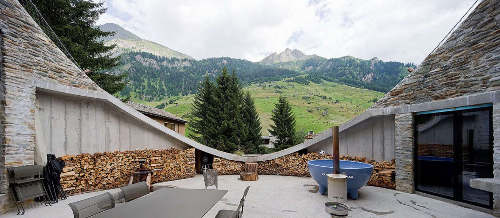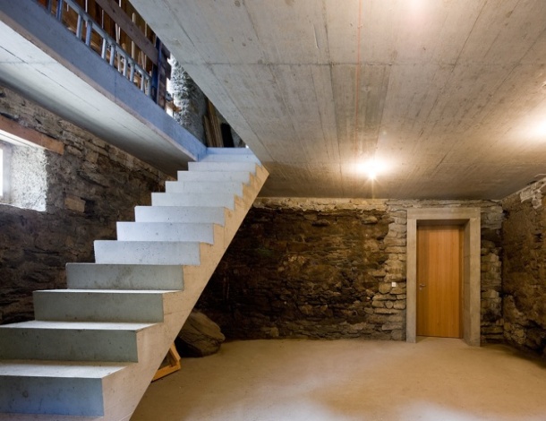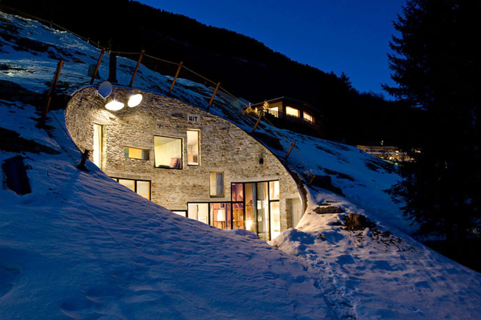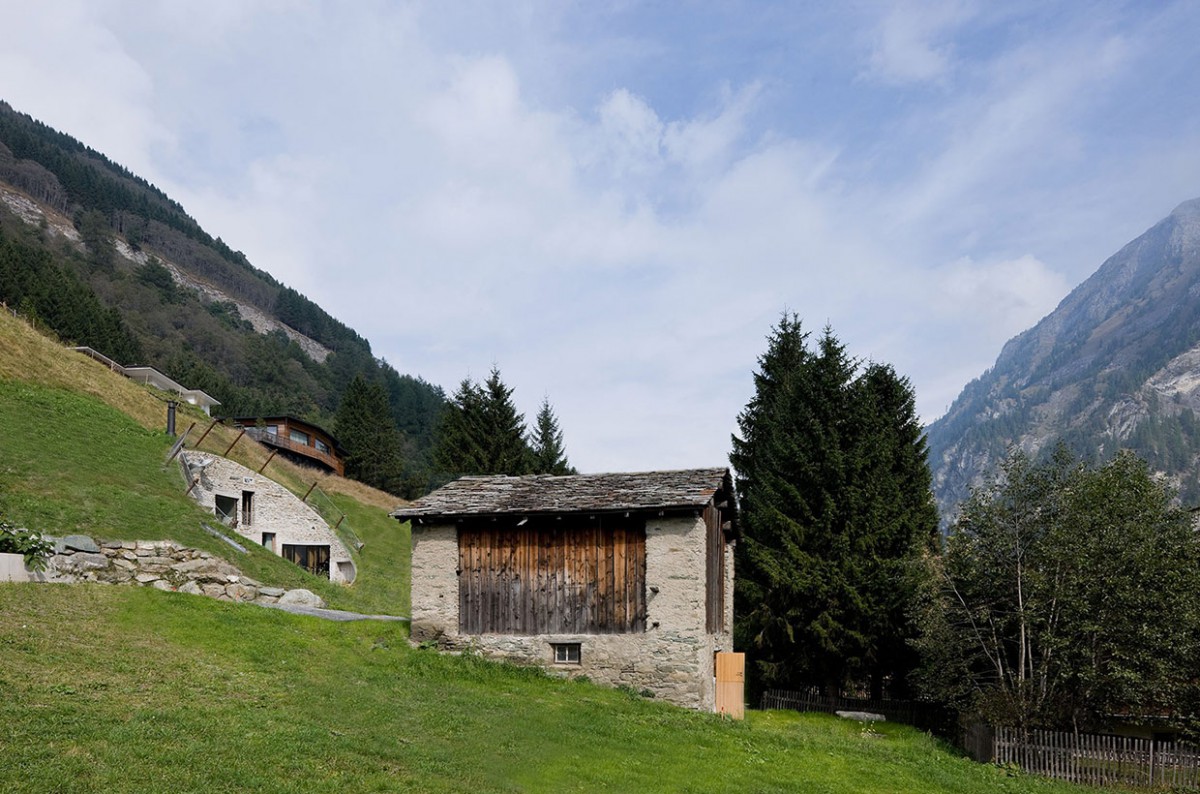 Odlučili su se usjeći u strminu padine da bi postigli prostranost fasade i ostvarili značajni potencijal za prozorske otvore. Pogled s građevine je također lagano nagnut, čime je postignuta dramatična vizura prema planinama koje zatvaraju usku dolinu.