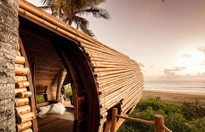 Kućica je izgrađena tradicionalnim tehnikama od lokalnog bambusa na visini od 1,8 m u krošnji palminog drveta.
