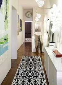 Poželjno je u duge hodnike postaviti nešto što će vizuelno presijecati njihovu dužinu , a istovremeno biti lijepo. Možete koristiti velike saksije sa cvijećem, slike, nisku komodu ili bambusove stabljike povezane crvenim koncem.