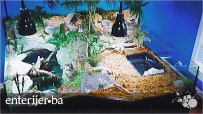 Nemojte zaboraviti da napravite suha područja s pijeskom gdje kornjača može da se opušta i gnijezdi. Također je jako bitno da dio prostorije gdje ste smjestili jezerce ima dovoljno sunčeve svjetlosti.