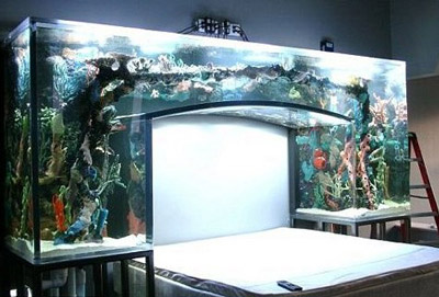 Naime, uzglavlje njegovog kreveta je ustvari jedan ogroman akvarij, predivno uređen i kao takav savršen habitat za brojne ribice.