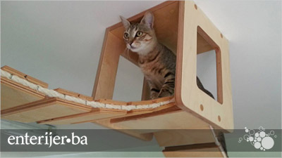 Stefan je osmislio i napravio nekoliko zanimljivih dijelova penjalice kao što su stropna šetališta, zidne krevete i odmorišta, stable za mace, grebalice i još mnogo toga.