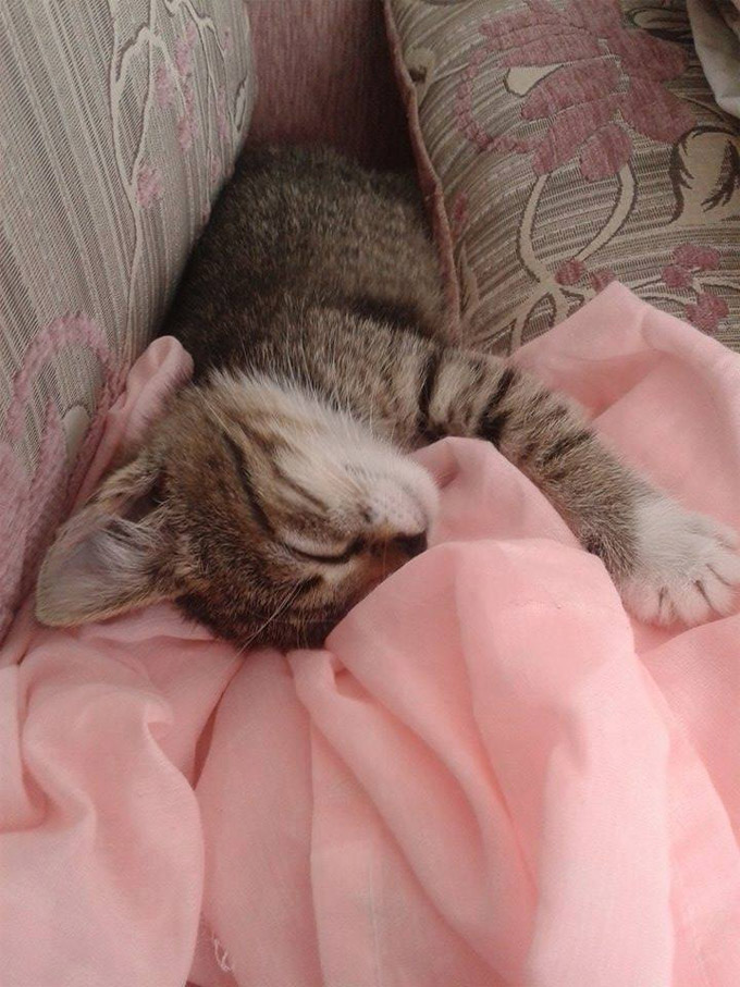 Svojevremeno je lutala po ulici, tražeći hranu. I malo ljubavi. Osvojila je srce Lane iz Sarajeva koja joj je sve to pružila. I deset puta više. Kaže da nikada nije upoznala umiljatiju macu. Spašena je u maju, a udomljena u avgustu 2014. godine. Do udomljenja boravila je u privremenom domu kod ljudi koji su joj pomogli riješiti se parazita koji su joj razarali crijeva. Sada ne izlazi iz krila svoje udomiteljice.