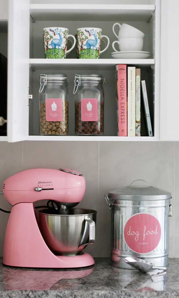 Stavite dekorativne naljepnice na kutije i tegle u kojima držite hranu za ljubimce.