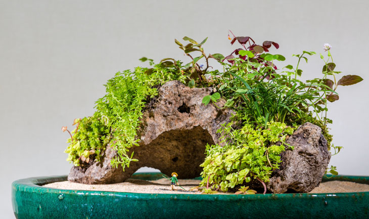 Kusamono su takozvane “akcent” biljke koje se izlažu uz bonsai u malim i zanimljivim posudama. Kao takve čine se savršenim cvijetnim skulpturama.