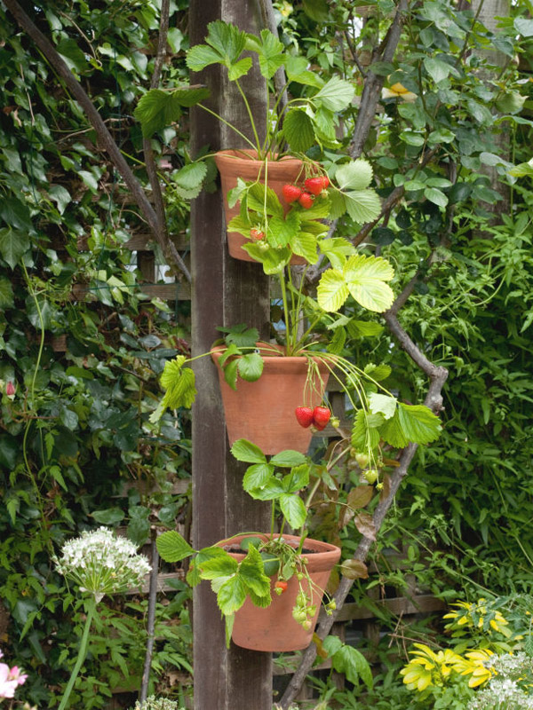 Saksije okačite na stabilnu stranu pergole i tako iskoristite vertikalni prostor u malom dvorištu. Jagode odlično rastu kada su na višem položaju. Također, tako ih je lakše brati.