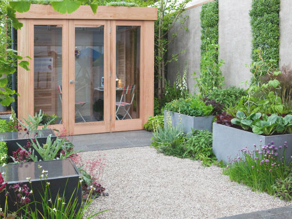 Dodajte malo glamura u mini vrtove koristeći moderne pocinčane saksije pune raznovrsnog bilja, kao što je začinsko ili grašak - penjačica koja se penje uz metalne spirale. Zasijte začinsko bilje oko baze kako biste stvorili nježniji izgled.