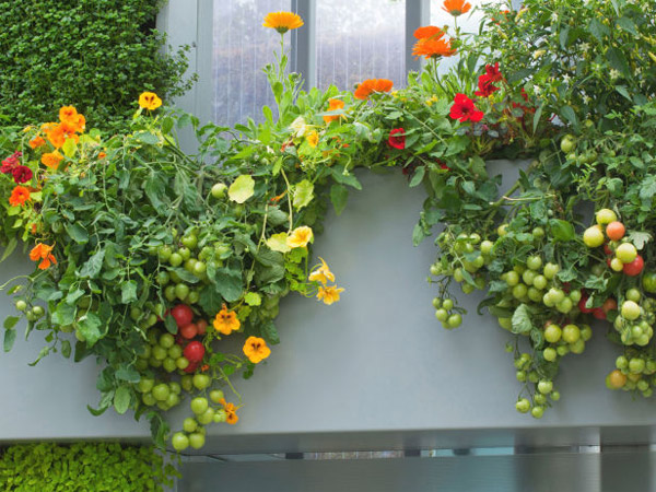 Duboke prozorske kutije idealne su za stanove, jer nude vertikalni prostor koji može biti jako praktičan. Cherry paradajz, razigrane biljke i komplementarne cvjetače stvaraju izvanrednu ljetnu eksploziju boja.