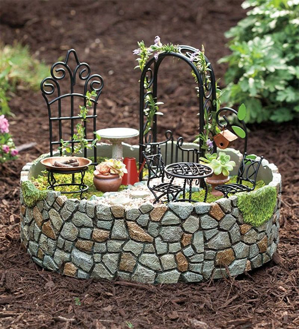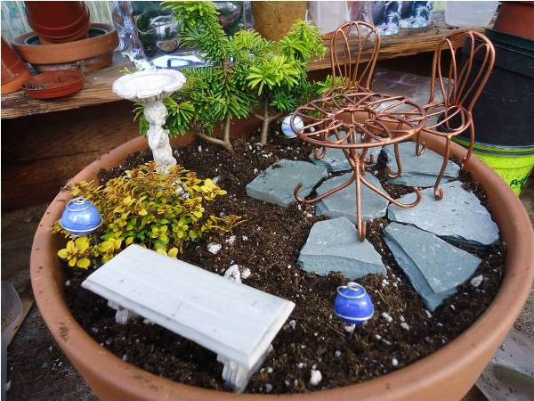Potražite oblutke, kamenčiće različitih boja i oblika koje ćete koristiti za dekoraciju. Ukoliko nemate mini stolice i sto, napravite ih sami od drvenih štapića ili žice. Ako vam je to komplikovano, možete napraviti klupicu.
