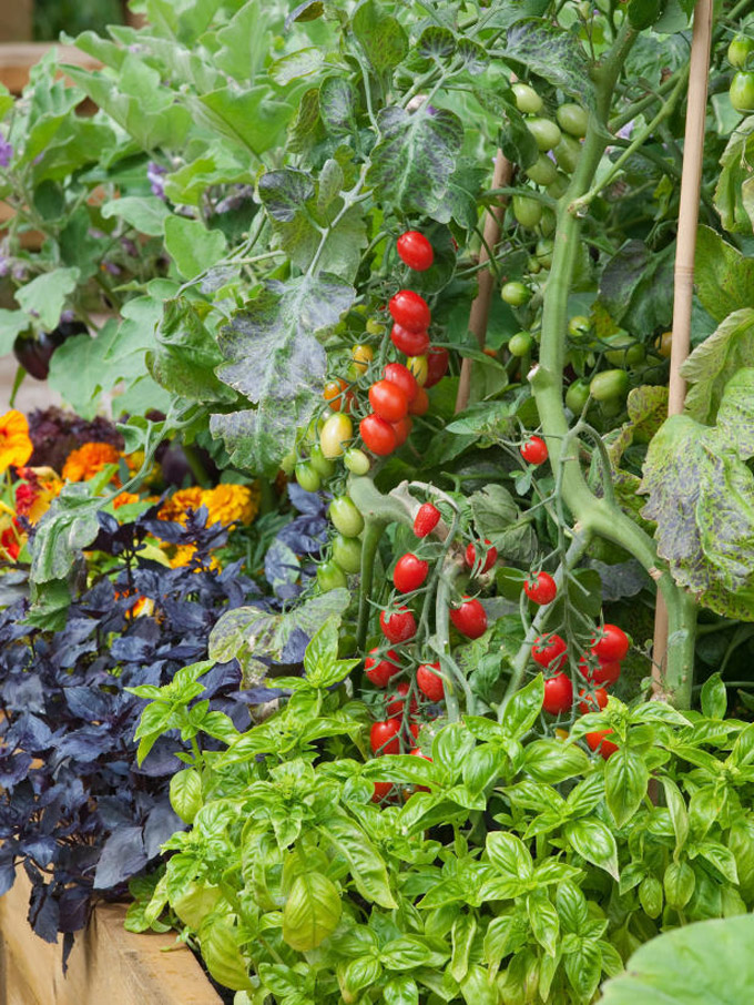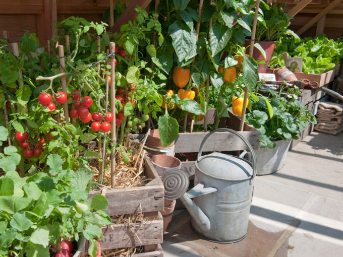 Napravite velike saksije od drvenih daski. U njima možete posaditi mnoštvo raznovrsnog bilja, kao što je Cherry paradajz, bosiljak i raznobojno cvijetno bilje.