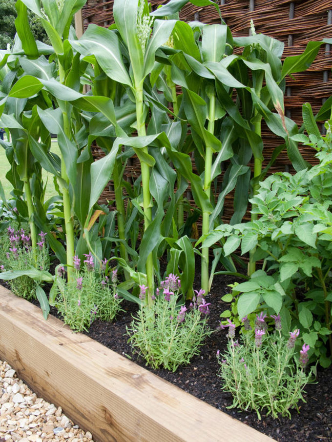 Voće i povrće možete pomiješati i tako napraviti upečatljiv detalj u dvorištu. Pomiješajte francusku lavandu sa kukuruzom i začinskim biljem.