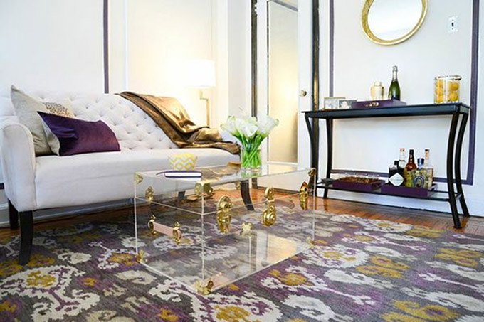 Genijalnost dizajnera se prezentira u bojama stana. Nevjerovatnim ikat tepihom dominiraju ljubičasta i boja topaza, dok siva unosi balans. Tematska uređenost stana čini ga zanimljivim, bez da se osjećate zatrpano nepotrebnim stvarima, a kombinovanjem svijeća, kristala i jastuka, Michele je to i uspjela.