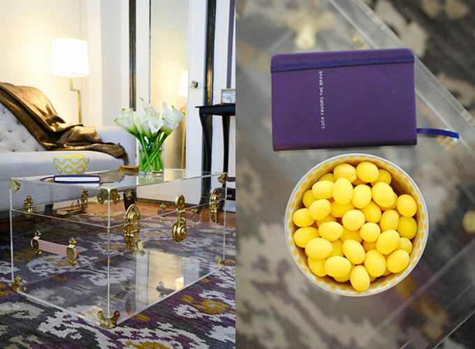 Škrinja od pleksiglasa je praktična i lijepa! Nije teška kao standardna škrinja, a ipak odlično služi kao stolić za kafu. Zdjele za slatkiše su zabavne i slatke sve dok se uklapaju sa bojama koje preovladavaju u stanu.