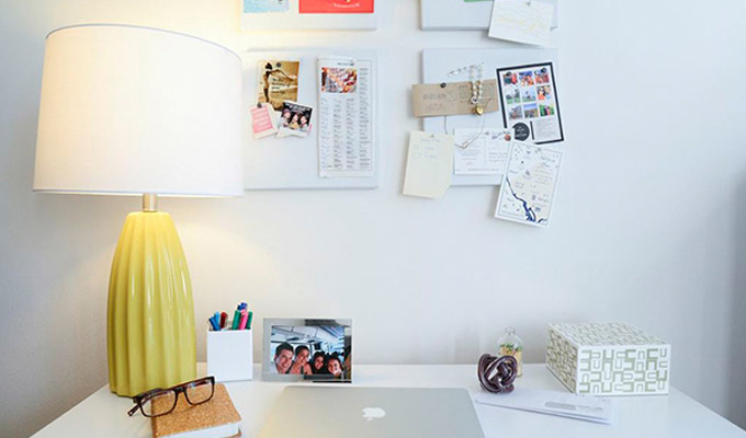 Ploča od pluta iznad radne površine pomaže da prostor bude organiziran, bez zauzimanja dragocjene površine radnog stola.