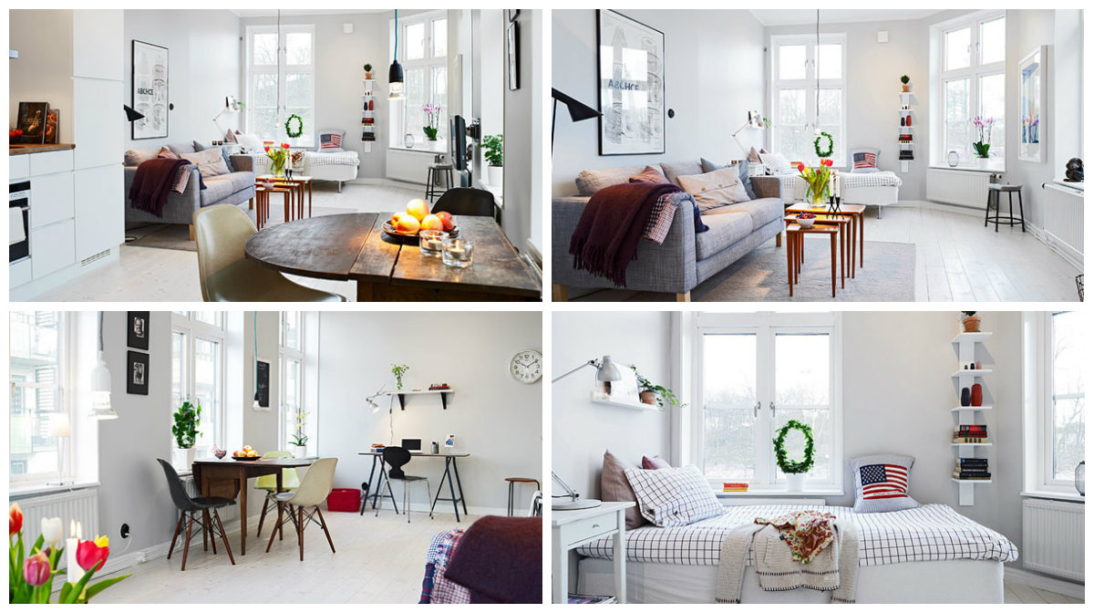 Stan na fotografijama je inteligentno rješenje za studente u Švedskoj, zbog kojeg bi mnogi odbacili ideju o studentskom domu. Smješten je u atraktivnoj staroj zgradi iz 1800 – te, u centru grada. Pri uređenju enterijera, zadržani su elementi, koji asociraju na istorijske vrijednosti tog područja. Tu su starinske crne utičnice, te visoki prozori, koje se sjajno uklapaju u ambijent sivih zidova i svijelog poda od borovine.