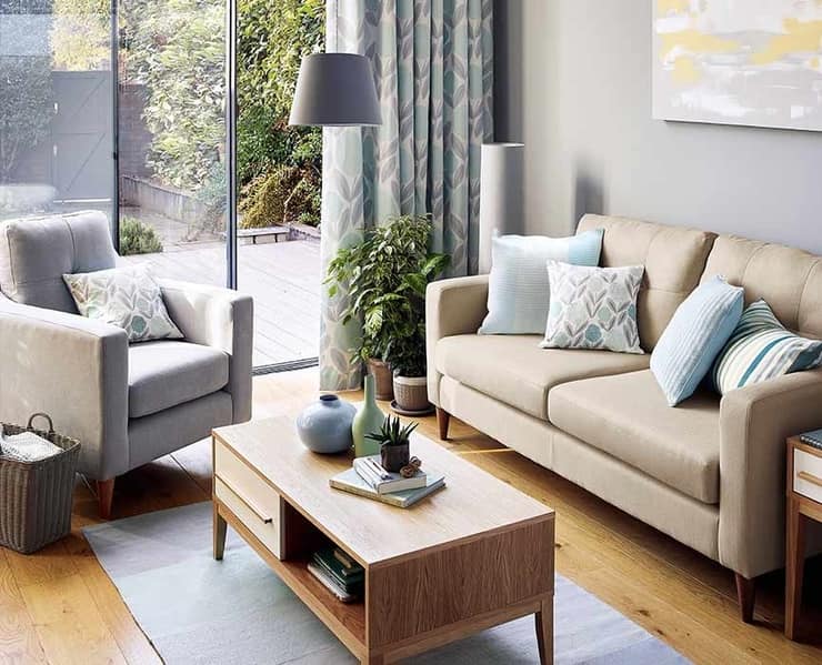 Što se tiče namještaja, trebate provjeriti da li je odgovarajućih dimenzija za sobu. Naprimjer, sofe i fotelje sa velikim rukonaslonima zauzimaju više mjesta, te biste ih stoga trebali izbjegavati. Odaberite jednostavniju vrstu namještaja sa ravnim stranama. Što se tiče stolića za kafu, najbolji bi bio onaj od stakla.