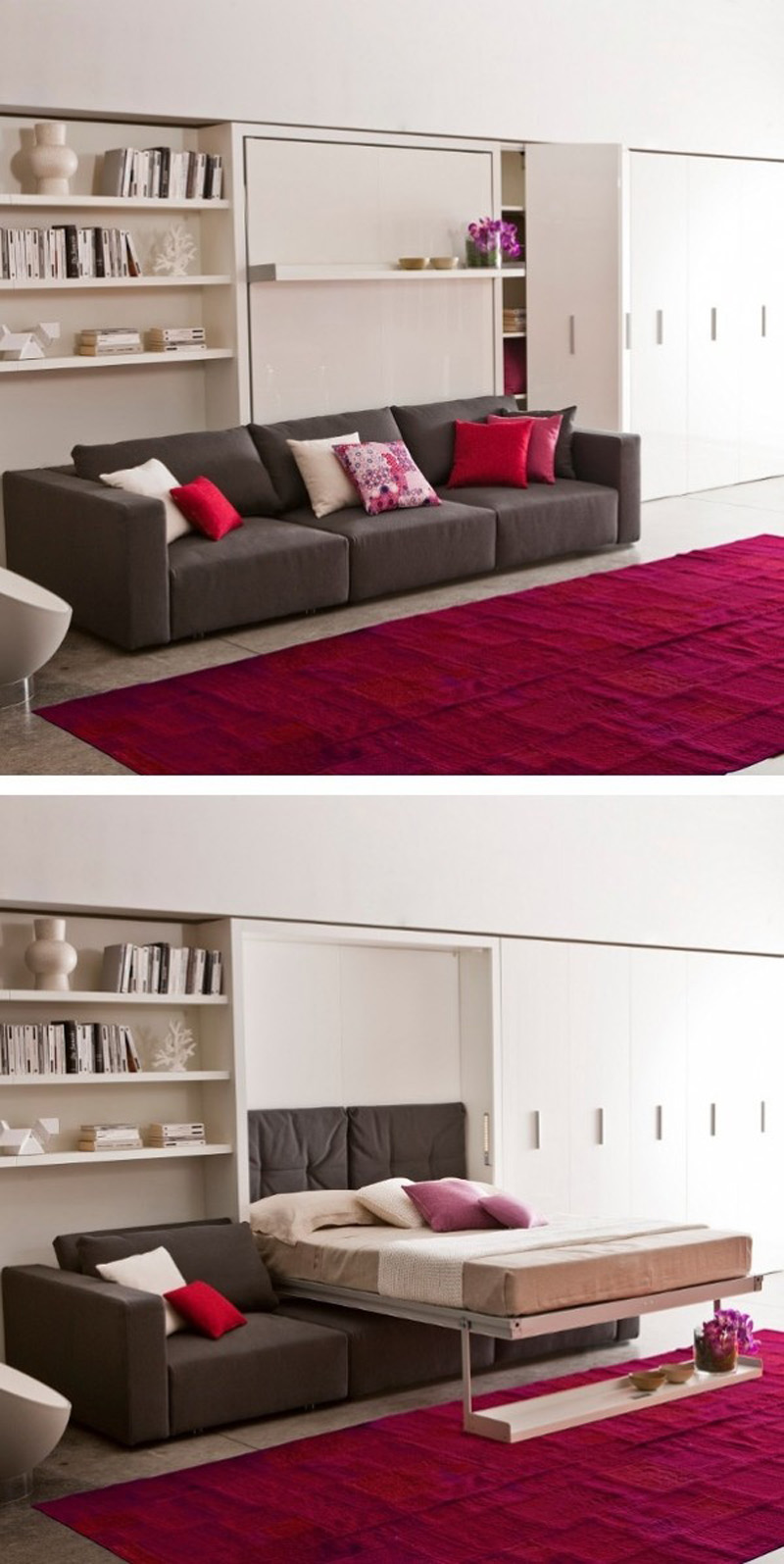Namještaj koji je dizajniran za male prostore pomaže kreiranju stiliziranih enterijera koju su udobni i elegantni. Postoji nekoliko različitih pristupa u dizajniranju prostora koji će na genijalan način sakriti krevet normalnih proporcija.