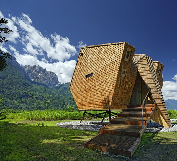 Njene nepravilne linije je čine posebnom. Struktura je napravljena od drveta i više je skulptura nego standardna građevina.