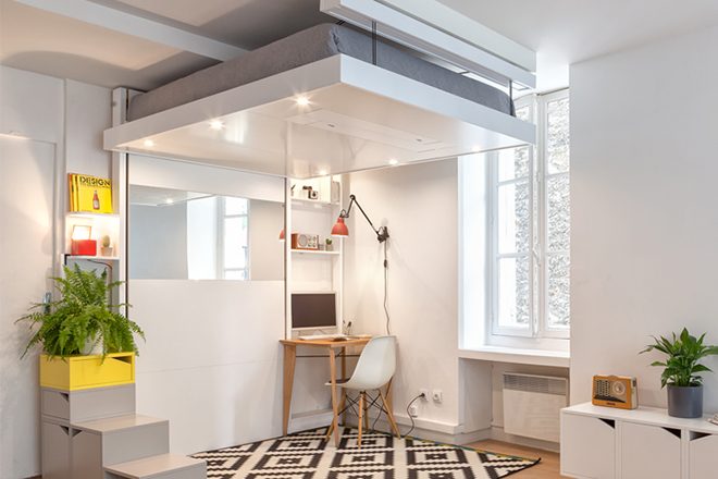 Dizajneri Francuskog studia Décadrages osmislili su krevet koji se preko dana podiže na strop. To rješenje nazvali su BedUp koje dolazi u 3 linije: BedUp Cocoon, BedUp Vision, i BedUp Campus. Krevet se prilikom spuštanja može podesiti na željenu visinu, pa nije potrebno uklanjati stvari ispod kreveta.