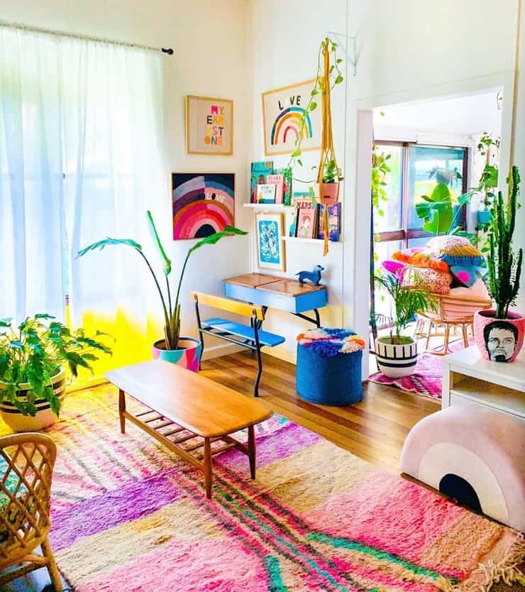 Što više detalja, tekstura i nijansi koristite rizik da ćete završiti u kičastom haosu je veći no ne bojte se i strpljivo vježbajte. Kao nadahnuće za stvaranje koloristički interesantnog i živahnog doma nudimo vam pogled u enterijer australske umjetnice Sarah Walsh McIntyre. Već sam pogled na eksploziju boja koju je Sarah kreirala popravit će vam raspoloženje, a nadamo se da će vas potaknuti da se odvažite unijeti malo više boje u svoj život.