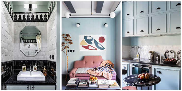 Očigledno je da se dizajnerica Marianne Evennou jako zabavljala smišljajući šta da radi s ovim sićušnim stanom koji se sada čini velikim i glamuroznim. Prelijepe boje su šlag na torti.
