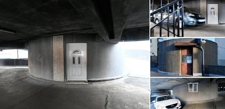 Stan je smješten u jednom od tri nosiva stuba velike garaže za automobile koja se nalazi u naselju Gornja Dubrava. Vrata i prozori su na zavojima između etaža parkinga.