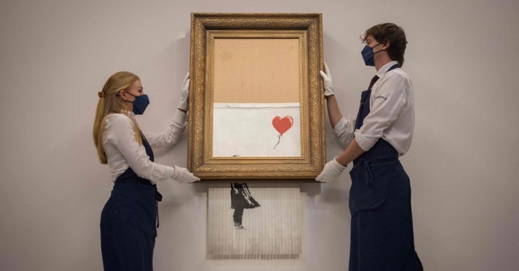Slika, koja je nazvana 'Djevojka s balonom', bila je spominjana u medijima širom svijeta u oktobru 2018. kad se samouništila neposredno nakon što je prodana u Sotheby'su za oko milion funti. Umjetnik je tvrdio da se radi o podvali, a aukcijska kuća je odbila ikakvu saradnju u tom 'poduhvatu', što je mnoge tada začudilo.