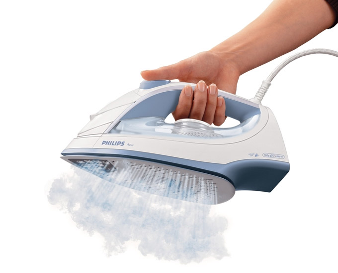 - Kad čistite peglu na paru, držite je u položaju za peglanje kako se čestice ne bi zaglavile u otvorima za paru