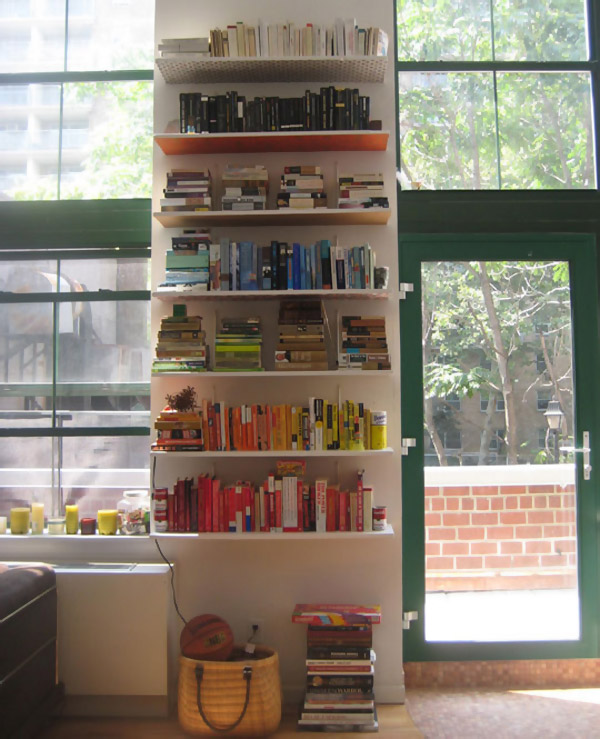 Ako vam se ne dopada pogled na vaše police za knjige dok sjedite udobno ušuškani na sofi, učinite atmosferu veselom tako što ćete skupiti različite tapete sa zanimljivim, šarenim uzorkom ili se poslužite najobičnijim ukrasnim papirom za pakovanje.